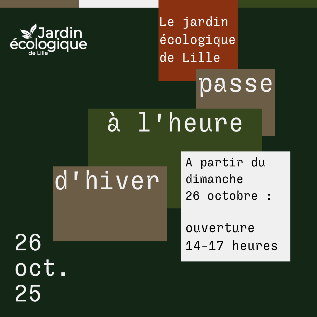 Ce dimanche 26 octobre, avec le passage à l’heure d’hiver, le Jardin écologique change d’heures d’ouverture : désormais, ouverture dominicale 14-17 heures.